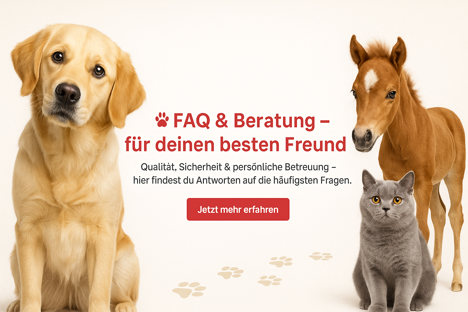 Wir sind immer da – für deinen besten Freund. Hier findest du Antworten auf die häufigsten Fragen rund um unsere Ergänzungsfutter & Pflegeprodukte.