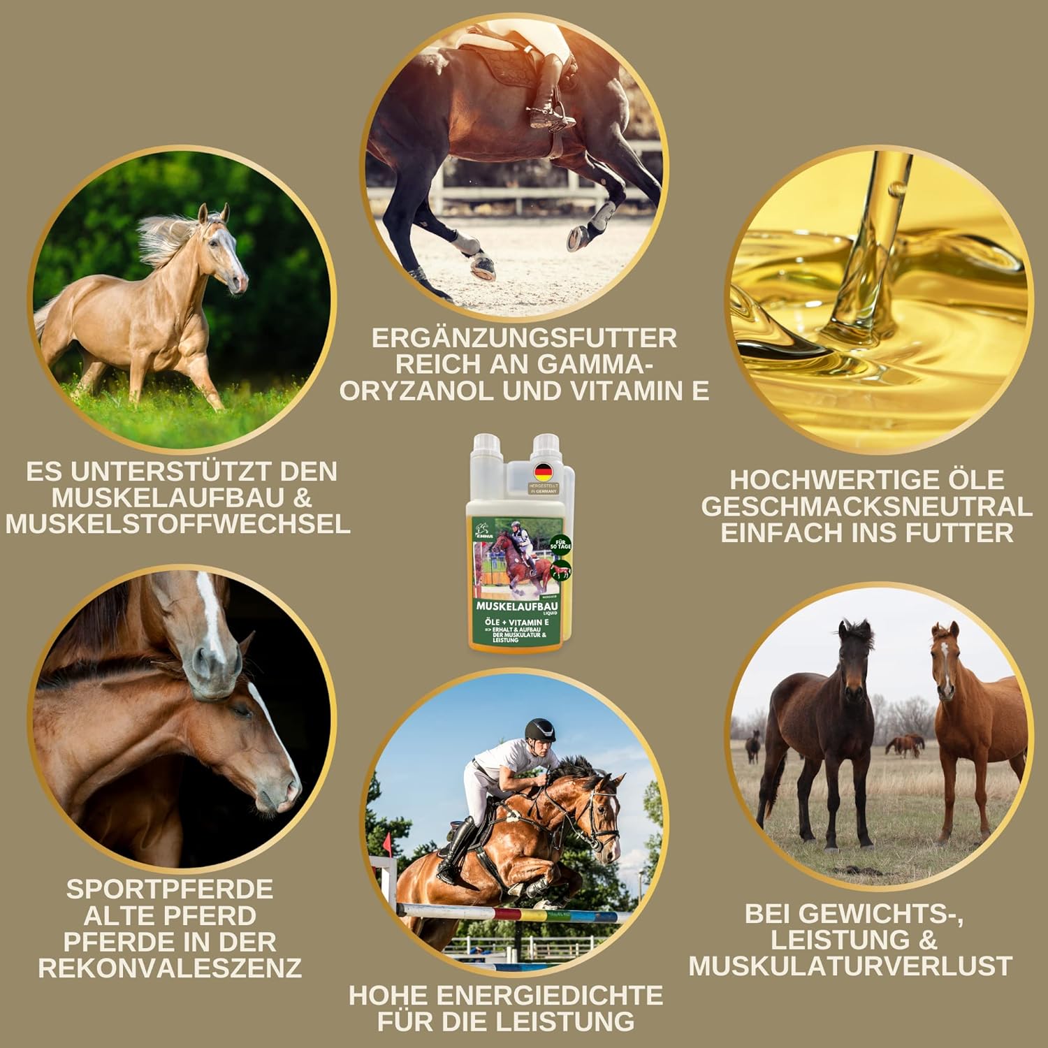 SPARSET: Ergänzungsfutter für den Muskelaufbau beim Pferd – smarter Dreiklang aus Reiskeimöl + Vitamin E, Aminosäuren & Vitaminen und einem Regenerations-Booster. Für sichtbar athletische Muskulatur, gesunden Energiestoffwechsel und schnelle Erholung.