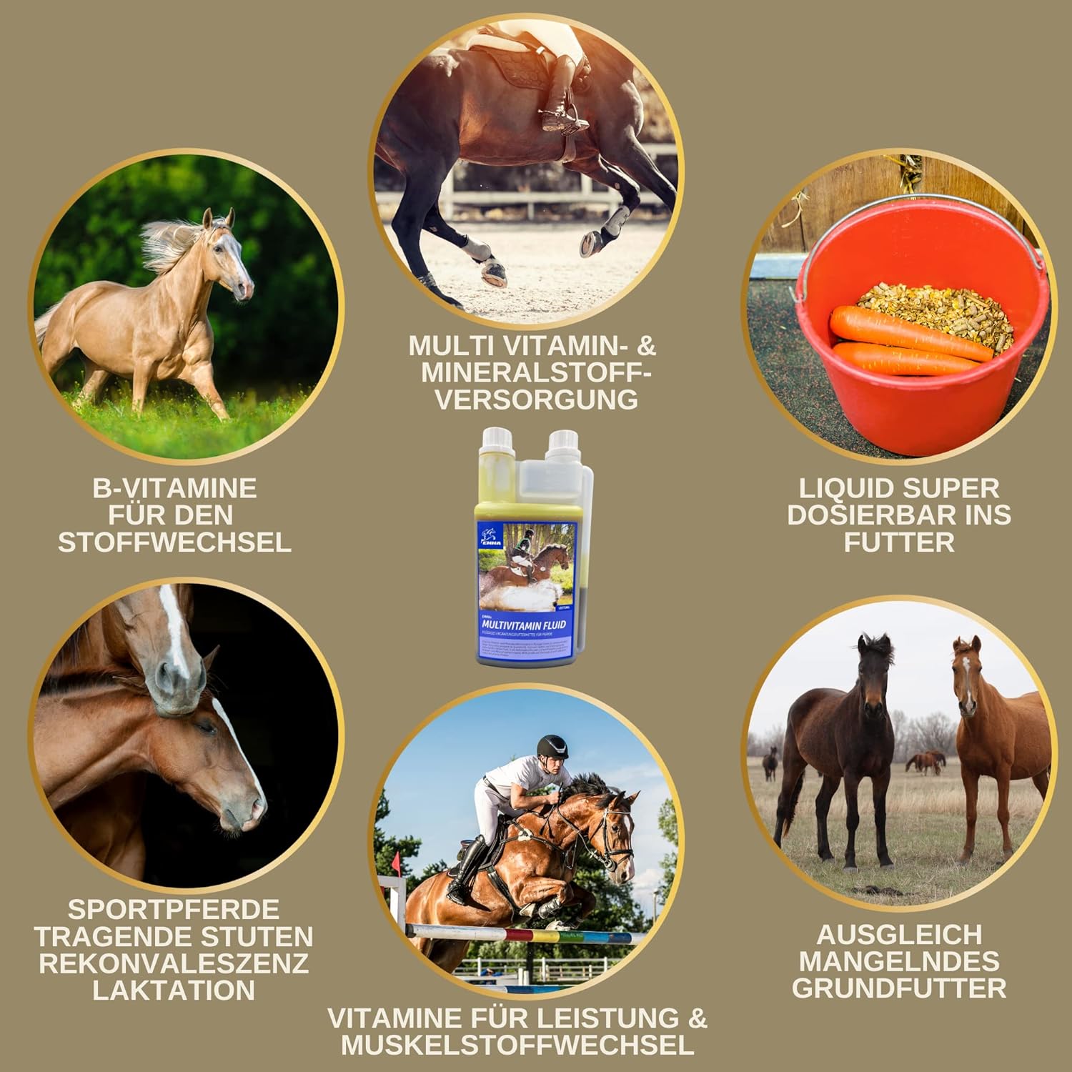 Multi-Vitamine für Pferde, Mischung mit B-Vitaminen, Zink & Eisen 1 L